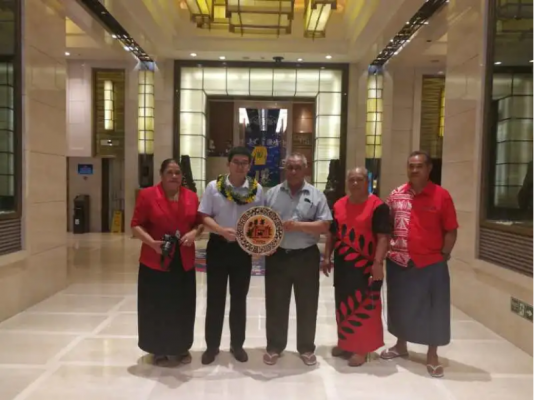 (图为许韬在教育部借调期间负责接待汤加王国教育与培训部长佩尼西马尼•费费塔一行)