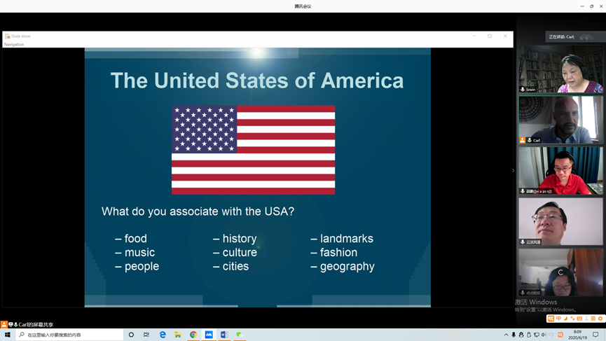 因为新冠疫情的影响,第5期中青年教师英语强化班所有课程最后都采取了线上教学,这对《欧美文化》课程教师Carl先生来说,确实有些意外,因为他2月就回到南昌,一直宅在专家楼里,等着和同学在教室里见面。但线上教学并未难倒Carl,他的在线课程一样上得生动、有趣。