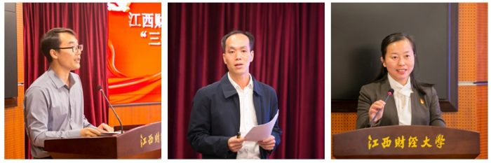 会上,龚美君传达了省委组织部“三化”建设经验交流会的会议精神,要求各基层党组织正视不足,明确任务,查漏补缺,推进落实。党委组织部副部长、人事处副处长肖建文以“着力加强基层党建‘三化’建设助力实现‘百年名校’江财梦”为题,汇报了学校“三化”建设的总体开展情况和推进举措;解读了“三化”建设总体要求中“十个方面”的具体内涵,介绍了学校开展“三化”建设的主要做法、主要成效和努力方向。国际学院党委书记涂艳从学院党委的层面,介绍了国际学院在“三化”建设中的具体做法,展示了“三化”建设以来的成效和党建特色成果。统计学院教工第一党支部书记郭露从基层党支部的层面,通过“三化”建设前后党支部面貌的对比,阐述了“三化”建设推动党支部组织力的大提升,进而推动党支部在人才培养、科学研究、学科专业、服务地方社会等方面取得显著成绩。党建工作思政督导组组长伍先斌通报了“三化”建设的督查情况,提出了各基层党组织“三化”建设中的改进方向。
