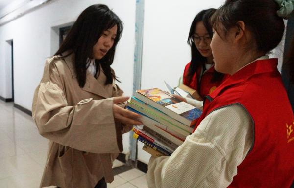 活动当晚,经院志愿者们提前来到现场,做好相关准备工作。活动开始后,不少同学积极来到现场捐赠书籍,并在明信片上填满真挚的祝愿。有的同学捐赠书籍后热心向朋友进行宣传,温暖在心与心之间传递。一时之间,活动现场便人流如潮。据悉,募捐得来的书籍将统一送往四川省阿坝州小金县美兴中学的孩子们手中。不少同学表示,此次书籍捐赠活动意义深远,这不仅是知识的传递,更是爱心的接力,他们将继续支持青协的志愿活动,用实际行动诠释“汇聚小爱、成就大爱”的深刻含义。