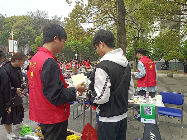 吆喝声,欢笑声,声声入耳;微信到账,爱心到账,账账入山区。外院同学们为本次爱心义卖活动捐赠的物品种类多样,包括学习用品、运动器材及许多生活必需品,给予了同学们充分的选择空间。志愿者们将其陈列于爱心义卖现场,耐心为在场选购的学生推荐物品。