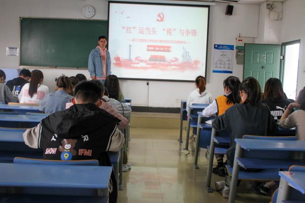 4月21日下午,统计学院开展“挑战杯”红色专项进支部活动。本次活动由在比赛中获得优异成绩的给你一朵小“红”花调研团队作成果分享,统计193班团支部全体成员积极参与。