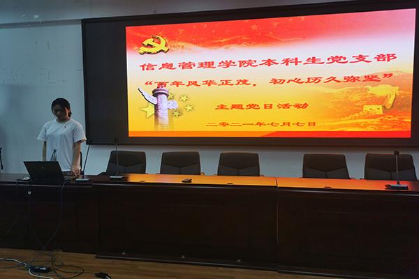 7月7日中午,信息管理学院本科生党支部召开“百年风华正茂,初心历久弥坚”七月主题党日活动。
