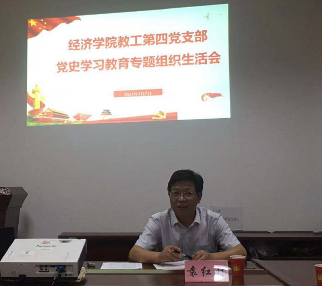 7月7日下午,经济学院资源环境经济系党支部开展党史学习教育专题组织生活会,党委常委、副校长袁红林以普通党员身份参加,会议由支部书记曾永明主持。