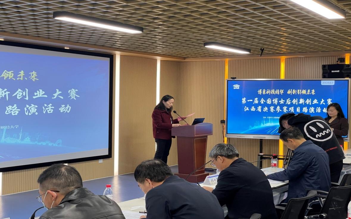 近日,由江西省人力资源和社会保障厅主办、江西财经大学承办的第一届全国博士后创新创业大赛江西省决赛参赛项目路演活动在我校举行。江西省人力资源和社会保障厅党组成员、副厅长黄加文,江西省博管办主任孙绘,校党委书记卢福财,副校长刘小丽,中国科学院化学物理所梁鑫淼研究员等出席活动。