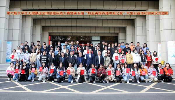 近日,第六届大学生无偿献血活动创意实践大赛暨第五届“热血英雄传递洪城之爱”大型公益活动颁奖仪式在南昌日报社举行,我校在此次活动中荣获一等奖,获评2017—2019年度全省无偿献血促进奖单位。