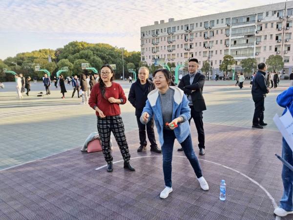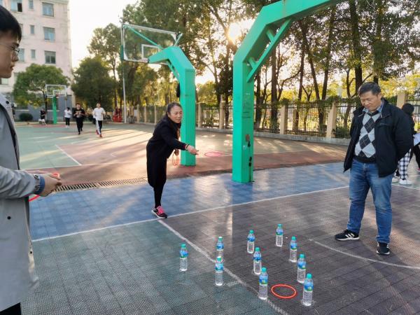 在“趣味点球”项目中,老师们纷纷化身足球健将,精彩进球;在“趣味乒乓球”项目中,只见乒乓球在手中的球拍上轻轻一弹,以一条优美的的弧线完美掉入桶中;在“趣味套圈”项目中,大家都不甘示弱,力图追求“利益”最大化,将所有的机会放在分值最高的目标上;在“趣味保龄球”项目中,“保龄球”以一条直线向前冲刺,击球完美;在“趣味飞镖”项目中,纷纷化身“小李飞刀”,在旁观赛的队友和学生们打趣道:“投不够60分就补考哦!”,引发一阵阵欢声笑语。