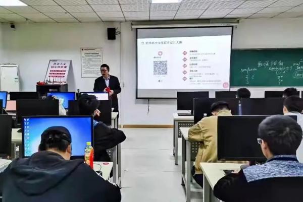 在第二讲中,陈爱国老师则主要围绕怎样参加创新创业大赛展开,在会上介绍了竞赛管理、项目立项和竞赛类别,并指导新生应该参加什么类型竞赛以及怎样为参加相关竞赛做好准备工作。在此之后,由钟志清同学、刘江同学、廖超豪同学分别对不同类型赛事进行介绍。多元化的参赛项目给了学生们更多选择。