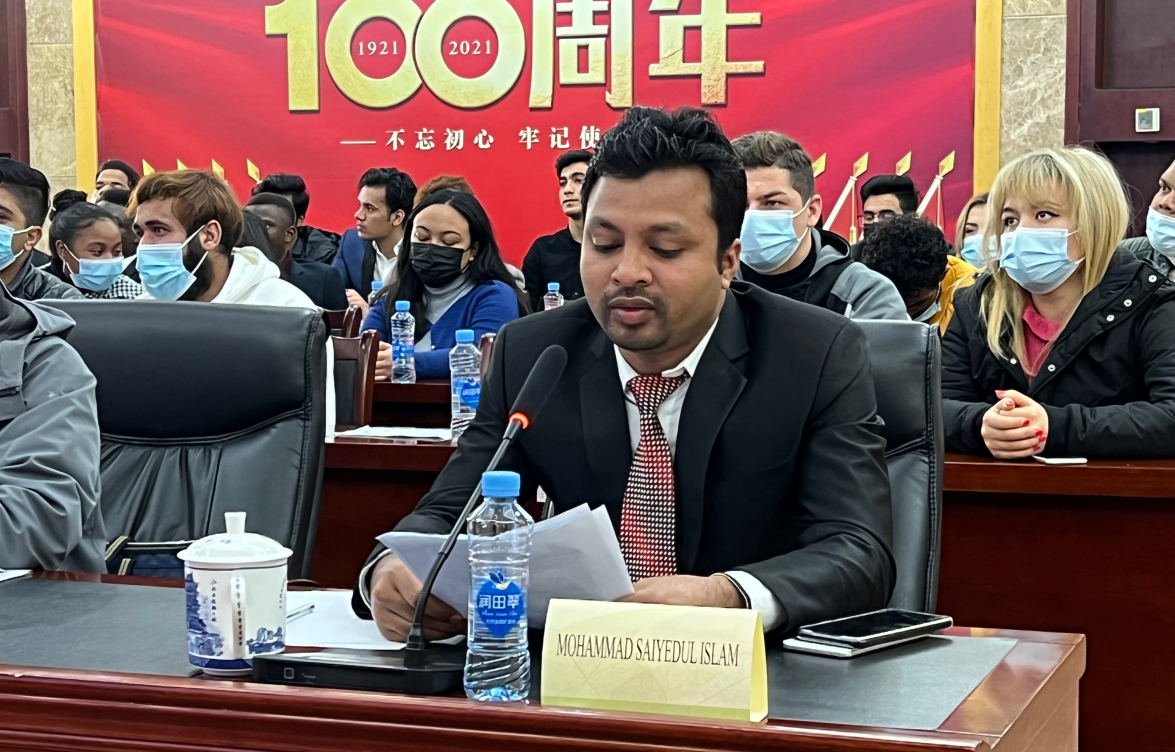 12月15日上午,我校11位留学生赴省外办参加了由中国人民对外友好协会主办、省对外友协协办的“我眼中的中国——美丽乡村”全球短视频征集大赛线上颁奖仪式暨交流会。中国人民对外友好协会会长林松添在会议上作了主题发言,省外办主任、省对外友协会长赵慧出席会议。我校国际经贸学院孟加拉籍博士留学生吴迪(Mohammad SaiyedulIslam)代表江西省留学生作交流发言。