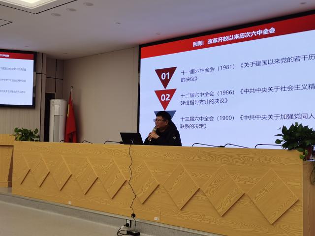 高水平组织、高站位领会、高标准要求。为深入学习领会党的十九届六中全会、省第十五次党代会精神,12月16日,党委宣传部副部长万绍红于宗舜楼恒瑞报告厅开展学习贯彻党的十九届六中全会精神专题宣讲会,会计学院师生代表一百余人现场参加宣讲会。