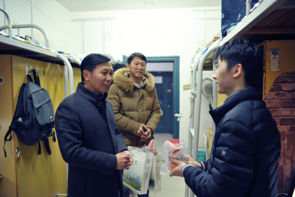 12月23日,经济学院开展考研学子慰问活动,经济学院党委书记邹春发、副书记远翠平以及学工办老师和志愿者同学们到毕业班学生宿舍开展送祝福活动。
