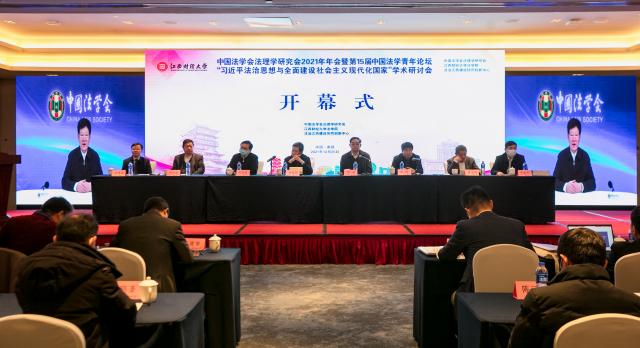 12月25日,由中国法学会法理学研究会主办、我校法学院及法治江西建设协同创新中心承办的中国法学会法理学研究会2021年年会暨第十五届中国法学青年论坛“习近平法治思想与全面建设社会主义现代化国家”学术研讨会在南昌召开。中国法学会党组成员、副会长王其江在开幕式上发表视频讲话。全国人大监察和司法委员会副主任委员、中国法学会副会长徐显明,中国法学会法理学研究会会长、中国社会科学院学部委员李林出席开幕式并作深入学习贯彻习近平法治思想与平安中国建设辅导报告。中共江西省委常委、政法委书记张鸿星会见了参会嘉宾。江西省法学会会长刘铁流、我校校长邓辉等出席开幕式并致辞。开幕式由我校法学院院长杨德敏教授主持。
