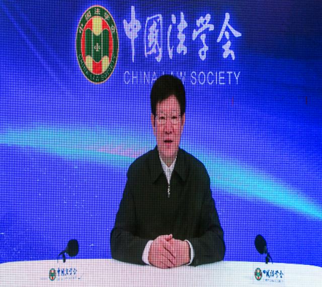 邓辉代表学校对莅临现场和线上参与的与会代表表示诚挚欢迎,他介绍了学校及法学院的历史成就、发展现状及未来规划,感谢中国法学会和法学界同仁们长期以来对学校和法学院的支持与鼓励。他指出,习近平法治思想内涵丰富、论述深刻、逻辑严密、系统完备,值得深入学、反复学,期待与会专家学者围绕习近平法治思想与新时代全面依法治国基本方略,深入发掘法理,相互切磋交流,努力让习近平法治思想走进民心,传播世界,铭刻史册。他表示,学校将全面加强法学学科建设,与全国法学同仁一道,共同为繁荣法学理论研究、推进法治人才培养做出新的更大贡献。
