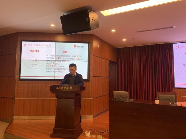 刘小丽指出,学校图书馆被评为江西省最美图书馆不仅是因为有最美的大楼,更是因为管理与服务做到了实处,为学校的教学科研、人才培养与服务社会等做出了积极贡献。图书馆的工作得到了省内外高校图书馆的认可,她代表全校师生感谢图书馆员工的辛勤付出。刘小丽肯定了图书馆在2021年工作上取得的成绩,如在特色馆藏方面已初步建成了“一带一路”和数字经济特色书库,并着手建设VR特色书库;摸索有益于社会发展的新服务,与江西省机关事务局、江西省图书馆等多个机构达成合作共识,开展资源共享;推陈出新,举办“旧书换新识”活动等。刘小丽希望大家在2022年完成常规工作之余,多梳理、多思考,发挥聪明智慧,将图书馆的工作提升一个新台阶。