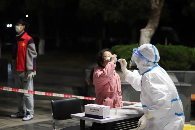 “小朋友,不用害怕,不疼的。”“奶奶,请这边坐好。”医护人员说话声音已经有些沙哑,眼里带着几缕红血丝,显得些许疲惫,仍一边安抚疏导家属们的情绪,一边娴熟地将咽拭子伸入对方的咽喉部采样,短短几秒,便采集好样本进行封装。面对老人家,医护人员会主动保持弯腰或者半蹲的姿势完成采样,十分暖心。