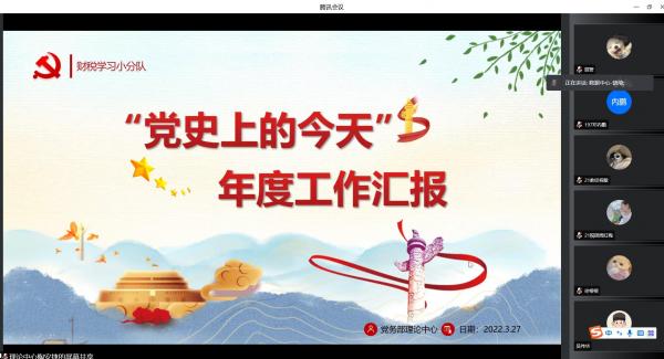 3月27日晚,财税与公共管理学院线上召开“党史上的今天”周年成果交流会。学院党委书记段远鸿、副书记谢丽华以及33名学生党员代表参会,会议由党务工作部李旭主持。