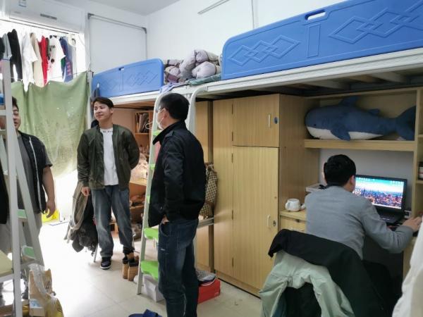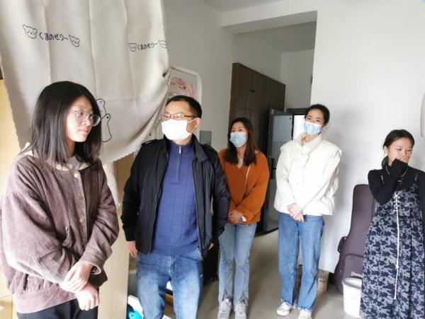 在做好疫情防控整体部署的同时,学院领导班子也不忘着眼实际,细心关怀学生的生活和心理问题。3月24日下午,院党委书记陶春海,辅导员钟晴、庄园走访统计学院学生宿舍,为学生们送去浓浓温暖。院领导们针对线上学习、封校饮食等问题,与学生展开亲切交流,了解学生的切实需求,叮嘱同学们应严格遵守学院疫情防控相关要求、做好个人防护,同时注重调整心理状态,怀着积极向上的心态平衡好学习与生活。