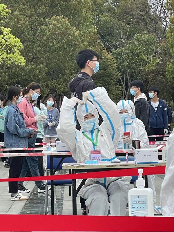 根据南昌市政府统一部署,学院全体师生在3月18日凌晨进行第一轮核酸检测。尽管时间紧、任务重,学院仍做好了相关组织保障工作,组织党员,招募志愿者投入到防控阻击战中,为完成全员核酸检测提供了坚实保障。统计党员们坚守本心,及时通知熟睡的学生参加核酸检测,并耐心地引导大家戴好口罩,保持间隔,有序排队,按照单位分批接受采样和筛查,做好现场秩序维护。