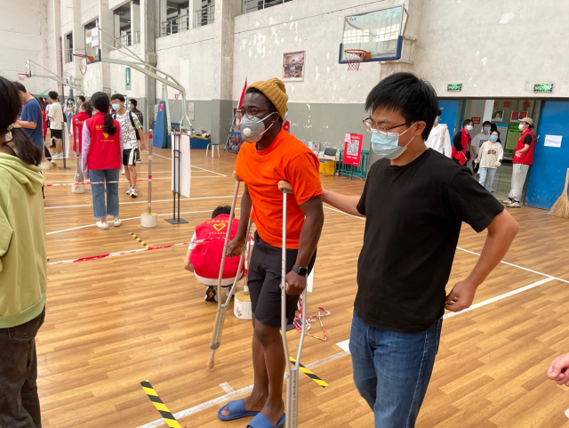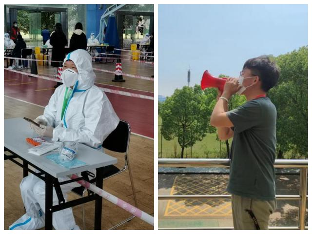 组织留学生进行核酸检测的海外教育学院袁卫老师在疫情期间一直坚守岗位,通过留学生签到打卡的方式,确保核酸检测数据准确、落实到人;对两位因腿脚受伤行走不便的留学生,袁卫每天将其接送到核酸检测点进行采样,同时积极协助就医,安排留学生助理解决日常用餐等问题,缓解心理焦虑;并主动联系后勤和食堂食材采购人员,解决食品等物资购买难等问题。