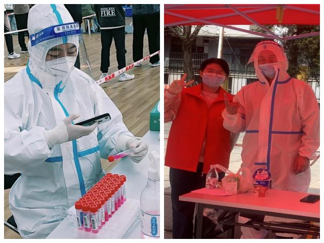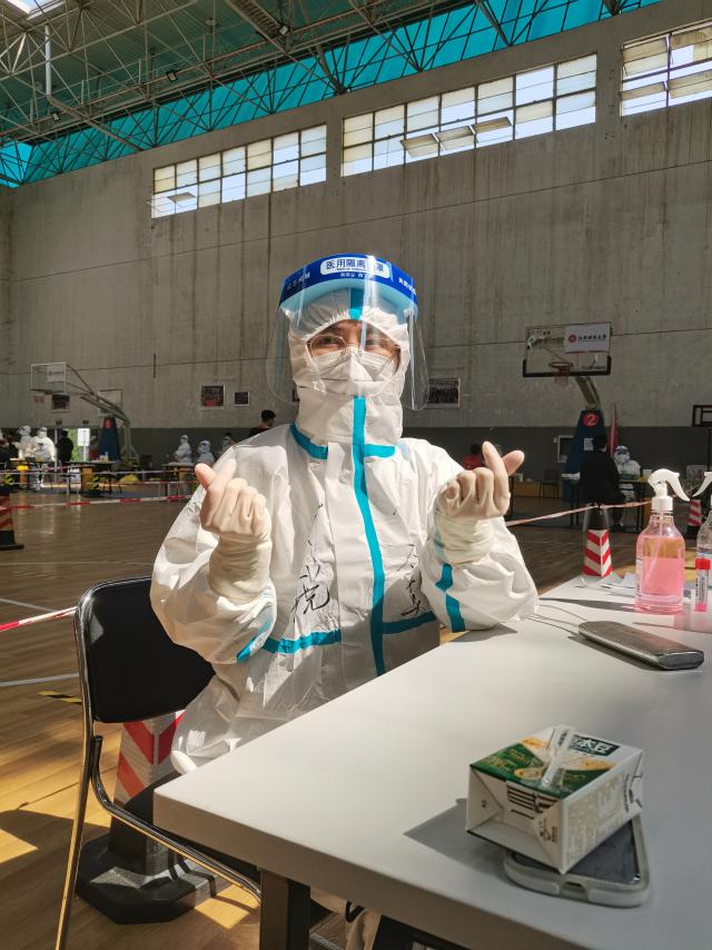 “明日继续,保持姿势,保持队形。早睡。”校医院的刘丽在深夜更新了她的朋友圈。3月以来,刘丽一直坚守在核酸检测采样一线,不透气的防护服一穿就是好几个小时,防护服下,是被汗水浸透的衣服、是无比疲惫的身躯;口罩下,是一道道深深的勒痕;手套下,是一双双被消毒水浸得干皱发白的手掌。对大多数人来说,核酸采样只需短短几秒钟。但对刘丽来说,从事前物资增补,到事中核酸样本采集,再带事后数据统计等,需要连续好几小时不间断地工作。晚睡早起,这已经成为了刘丽最近的常态。