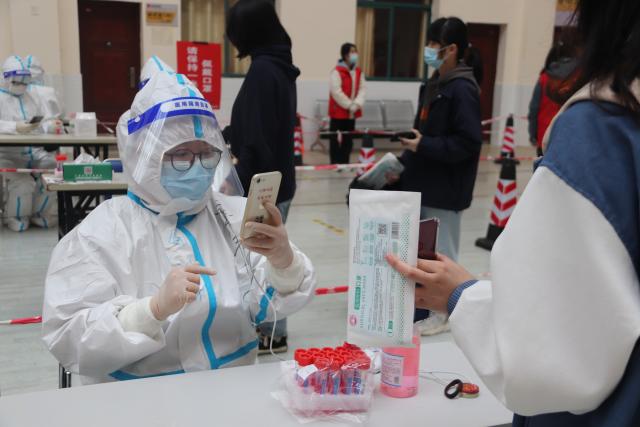身为教工志愿服务队一员的产业经济研究院杨京老师,在十五轮全员核酸检测中主要承担信息录入和试管打包的工作,其中6次承担信息录入工作,9次承担试管打包工作。截至24日,共录入信息3000余人次,共计打包装箱六十余件。试管打包是风险岗位,“这份工作总是要有人来做的,为什么不能是我呢?”她沉着应对,细心把关,认真地核对检查每一支试管,以极高的专注度应对工作的挑战。