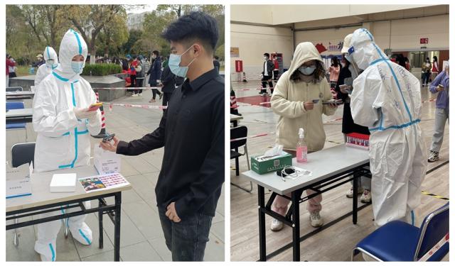 在学校召集志愿者通知后,研究生院党员们积极响应,纷纷报名。匡琳副院长在看到志愿者有任务后第一时间报名,提前一天住在办公室,担任全员核酸检测的信息扫码工作。校党员庄凯老师第一时间主动请缨,先后承担了10次信息采集工作、3次试管转运、打包工作,录入了近5000余人次的信息。每一个人都是一束光,在接受别人温暖的同时,照亮身边所有人。