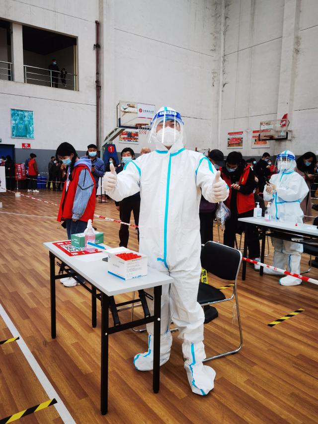党办、校办行政科张鹏老师,在十五轮全员核酸检测和十轮“适时抽检”中分别承担过蛟桥园南区、财大慧园小区、蛟桥园北区、麦庐园南区检测点协调及信息采集员等工作,累计承担“全员、适时抽检”核酸检测点协调人工作总次数为20次,信息采集员工作2次,其中14次承担全员核酸检测检测点协调人工作,2次承担信息采集员工作,6次“适时抽检”检测点协调人工作。他以办公室为家,全天候“战备”接受各项疫情防控工作任务,用实际行动展现了一名共产党员的初心和使命,诠释了一名江财人的责任和担当。