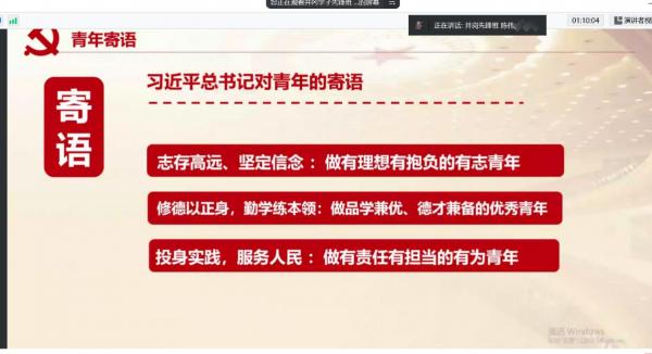 ​​  4月23日上午,统计学院于线上召开江西财经大学党校第66期、统计学院分校第11期第五讲党课“‘疫’路上党旗红”,本次党课由井冈学子先锋班班长范珅逢井冈学子先锋班基层党建组成员陈伟主讲,辅导员钟晴老师主持,统计学院全体入党积极分子参与学习。