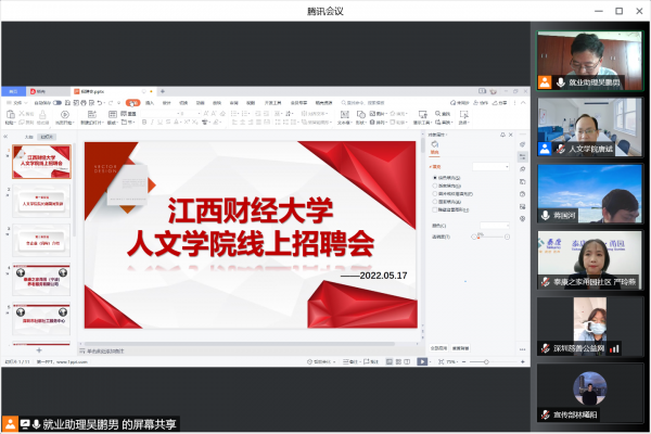 5月17日,人文学院利用现有的校企合作资源,搭建线上招聘平台,组织开展线上招聘会。院长蒋国河、院党委书记杨尚勇、院党委副书记马明、专职就业老师、各企业(机构)负责人及毕业生参与了此次线上招聘会。