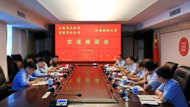 6月24日上午,江西用友软件有限责任公司总经理吴克清一行来校交流,洽谈合作。副校长袁雄出席座谈会。