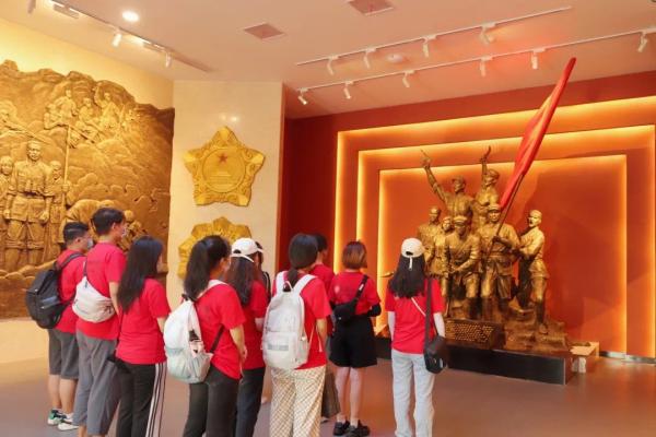 重温革命红色之旅,重燃革命红色之情;缅怀历史峥嵘岁月,传承革命先烈遗志。于都的每一寸红土地都留有革命的血色痕迹,在新时代蓬勃发展的今天,新青年仍需饮水思源,不忘初心。团队深入学习于都长征出发地历史起源与红色革命文化。在于都县革命烈士纪念馆感受历史的百年风华定格在过去,新时代的蓬勃新生召唤青年前行。在于都长征渡口,团队深刻感受到“红军抗日事长征,夜渡于都溅溅鸣“的漫漫长征,在于都红军长征出发纪念碑前,透过大理石感受马嘶镝鸣的战场,风雨如晦的长夜,生离死别的凄惨,夜紫浸湿的土地。