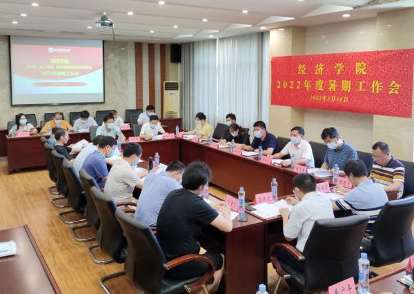 7月10日,为全面总结2022年上半年工作,客观剖析学院发展过程中遇到的难点问题,不断推动学院持续高质量发展,经济学院召开了2022年暑期工作会议。全体院领导班子成员、各系(室)负责人和各专业负责人出席,并特邀学院部分青年教学科研骨干参加。会议分为三个阶段。