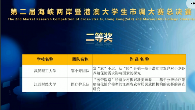团队参赛作品《“医带医路”绘就乡村振兴壮美画卷——基于分级诊疗策略演化博弈模型的江西省农村居民就医机构选择的调查研究》洞察就医现状,聚焦医保政策,助力国家乡村振兴战略。此次大赛由“正大杯”第12届全国大学生市场调查与分析大赛中选拔产生大陆赛区7支代表队、中华应用统计学会组织的台湾赛区选取的台湾2支代表队、澳门城市大学组织选拔的1支港、澳特别行政区代表队共10支团队进行同台角逐,争夺总决赛的冠军、亚军和季军,同时2支泰国代表队进行交流展示。