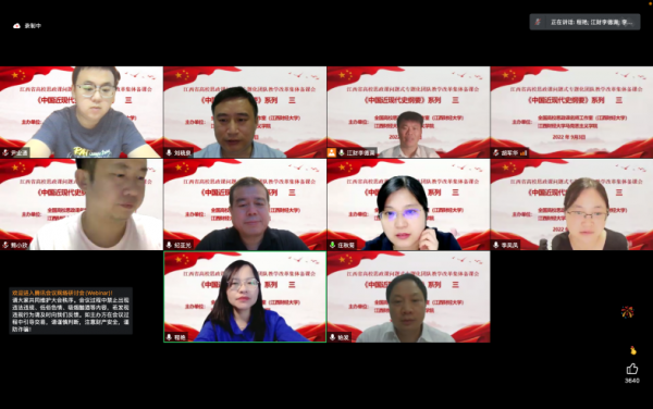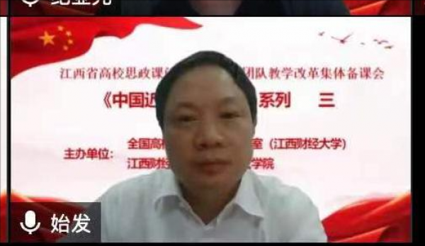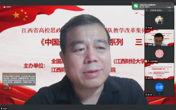 9月3日晚,全国高校名师工作室(江西财经大学)、江西财经大学马克思主义学院组织召开了《中国近现代史纲要》问题式专题化团队教学改革集体备课会第三次会议。会议邀请了南开大学马克思主义学院教授、博士生导师,教育部教学指导委员会《中国近现代史纲要》教指委副主任委员纪亚光为点评专家。江西财经大学党委常委、副校长陈始发教授出席会议并致辞。全体团队成员以及省内外700多名思政课教师和相关专业学生参加了会议。会议由马克思主义学院党委书记刘晓泉教授主持。