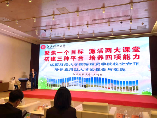 国际经贸学院老师王树柏受邀参会,并以“聚焦一个目标、激活两大课堂、搭建三种平台、培养四项能力”为题,介绍了我校产教融合校企合作育人的探索与实践,并与来自国家级学会协会、研究机构、高等学校和数字贸易头部企业参会代表进行了深入交流探讨,发出了江财声音,引起强烈反响。