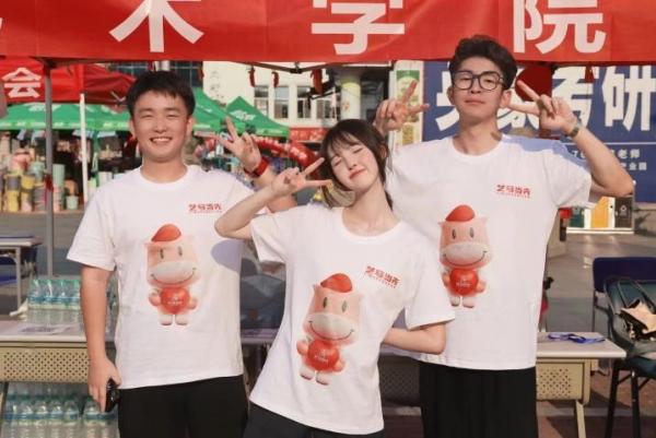 艺小马拍了拍你并说“你好,新同学”。艺术学院这花式迎新礼,仪式感满满!妙趣横生的艺小马迎新牌、印有IP形象的特色T恤、拍照打卡展板,处处“艺马当先”。江财红、活力粉,一只可可爱爱的3D小马,怀抱着一颗爱心,为远道而来的新生们加油助力。IP设计者郑玄烨表示:“憨厚的小马和我们大学生很像,懵懵懂懂却对万物都有一颗好奇心、不断碰壁也不言弃。”对萌新而言更是如此。“现当金络脑,快走踏清秋”,愿他们以知识为鞍,在秋高气爽的江财恣意驰骋,有所建树。