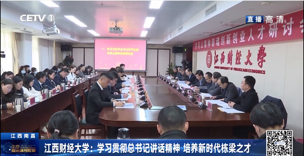 3月20日,中国教育电视台《全国教育新闻联播》报道题为“江西财经大学:学习贯彻总书记讲话精神培养新时代栋梁之才”的新闻。报道指出,日前,学校召开井冈山精神铸魂创新创业人才培养研讨会。会上,师生们集中学习了习近平总书记关于弘扬井冈山精神的重要论述,各部门负责人结合各自实际探讨如何把井冈山精神转化为广大师生服务社会的责任感和使命感。