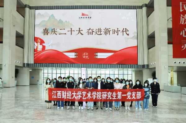 11月6日下午,艺术学院组织师生前往省图书馆参观《喜迎党的二十大苏区振兴十周年成就展》。学院党委副书记肖勇,学院辅导员刘歆玮、邓婷、喻睿之、余瑶、谭弘带领20多名学生集体参观。
