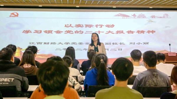 11月2日下午,副校长刘小丽以“以实际行动学习领会党的二十大报告精神”为题,为国际学院入党积极分子上党课,以一个老党员身份分享学习党的二十大精神的体会。国际学院师生党员代表、入党积极分子代表共计80余人聆听了党课,党课由学院党委书记邢小明主持。
