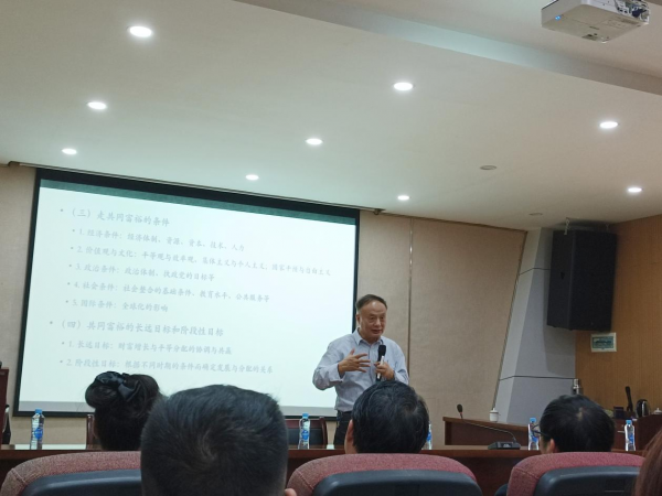 讲座伊始,关信平教授首先对共同富裕的含义进行解读,其次对我国国情进行历史回顾、展望以及现实条件下我国走共同富裕道路的阶段性目标,最后讨论了如何充分并合理发挥社会政策在促进共同富裕道路中的作用。