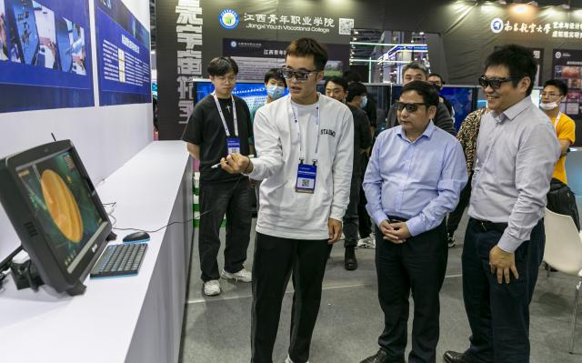 从第三届世界VR产业博览会开始,虚拟现实(VR)现代产业学院积极组织参展,向社会展示学校VR成果,展现学校VR实力。今年是第三次参展,以“元力觉醒、江财VR向未来”为主题,用五个区域向社会展示VR成果,其中,“导览区”运用轨道镜技术展示虚拟现实(VR)现代产业学院的发展历程;“核心区”以图片形式介绍学院在产学研用、人才培养成效及取得的社会影响;“成果区”以图、文、视频多种形式展示江西省数字媒体重点实验室和江西省文化创意中心的科研成果及产业化成果;“校企合作区”展示产教融合基地建设情况及校企联合研发成果;“用户体验区”展示学生自主研发的优秀作品及虚拟人技术。(文/虚拟现实(VR)现代产业学院 姚春 图/李军 编辑/徐嘉威 审核/一审 姜莹 二审 赵旻 终审 李大晖)
