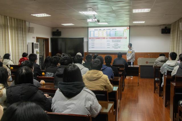“信敏廉毅,敬业乐群,永葆我校光荣……”金融201班班会在合唱校歌中开始,班级同学说:“校歌犹如江财的精神图腾,每次奏唱都是一次洗礼,使我获得向善向上向着理想的精神力量”。班长项团从班徽设计、班级概况、制度建设、学风建设、特色活动等多个方面,展示了班级风采。在读书分享环节,陈思博同学向大家分享了诺奖得主中国当代作家莫言的作品《生死疲劳》,他从分享的原因、核心内容以及心得感悟三方面为大家作了介绍。读书分享是金融201班每次班会的固定环节,目前全班56名同学已分享58本书,每位同学经过充分准备将一本好书由厚到薄,在班集体的分享和碰撞中又可使知识由薄到厚,逐渐形成爱读书、读好书的良好氛围。