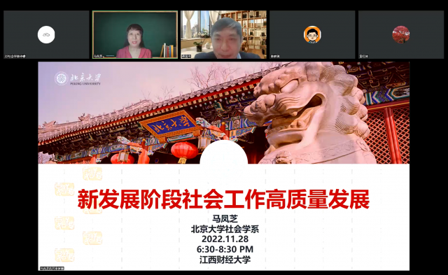 11月28日,北京大学马凤芝教授为人文学院师生开展以“新时代社会工作的高质量发展”为主题的线上讲座。学院约300名师生参加了线上讨论。讲座由院长蒋国河主持。