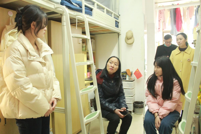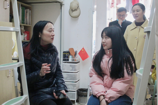 刘小丽深入学生宿舍,查看宿舍环境,细致了解同学们的学习和生活情况,鼓励同学们学好专业知识,拓宽知识面,希望同学们遇到困难或困惑时可以及时向班主任反映。在交谈中,叮嘱各位同学要遵守校园防疫要求,做好个人健康防护。最近气温骤降,还提醒各位同学要记得增添衣物,预防感冒。