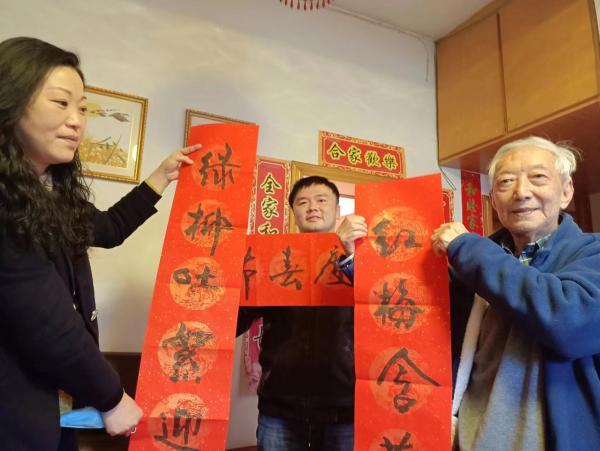 金欣向老会员袁文招送上了民进省委会《致老会员的慰问信》、慰问金和节日的祝福,简要介绍了目前学校民进建设和发展情况,转达民进省委会和民进江财委员会向袁老师多年来所做出的重要贡献表示感谢,并送上新年祝福。高杰向袁老师送上春联和鲜花,向袁老师介绍了“1%工程·推动共同富裕”春联万家活动等情况。在详细了解袁老师的身体状况、居住环境以及家庭物资储备情况后,还科普了预防新冠病毒和新冠疫苗接种知识,叮嘱老会员注意做好个人防护。亲切交谈,嘘寒问暖,老会员的喜悦之情溢于言表,他对组织的关心表示由衷感谢。