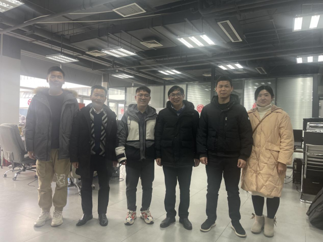 1月17日,人文学院院长蒋国河、院党委书记陈华、院党委副书记马明、辅导员徐丽莉一行来到南昌用友产业园,到校友企业——江西魅影文化传媒有限公司走访,详细了解校友企业发展现状,并与负责人谢添、周毅博就人文学院校友工作开展、建立就业实习基地等事宜进行深入交流。