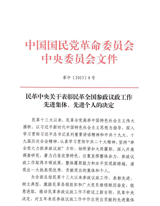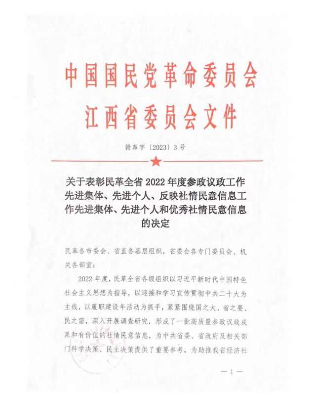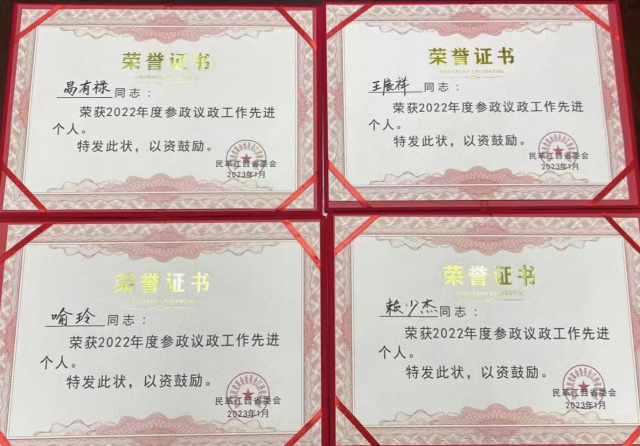 另外,学校民革还被民革江西省委会评为“2022年度参政议政工作先进集体”,易有禄、王展祥、喻玲、赖少杰等四位民革党员获评“民革江西省委会参政议政工作先进个人”。(图文/易有禄 王慧 审核/一审 姜莹 二审 赵旻 终审 李大晖)