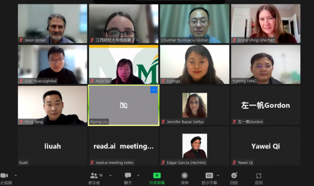 2月21日晚,我校与美国乔治梅森大学开展在线合作见面会。乔治梅森大学国际处主任Krista Uhrig,计算机与大数据部门主任Dr. Jason Kinser,信息管理学院院长方玉明、国际文化交流中心主任杨勇及两校相关工作人员参加会议。