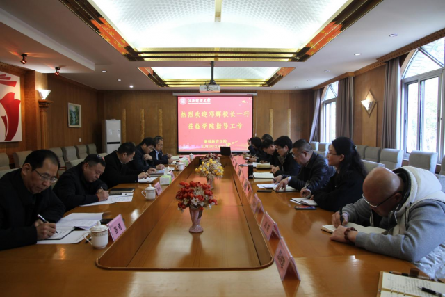 2月27日下午,校长邓辉、副校长袁雄到继续教育学院调研指导工作,党办、校办,发展与合作处,财务处,后勤与资产管理等单位负责人等陪同调研,学院领导班子成员和各科室负责人参加调研座谈。