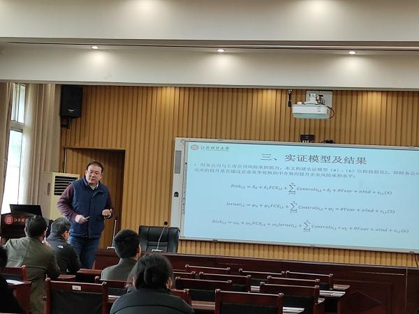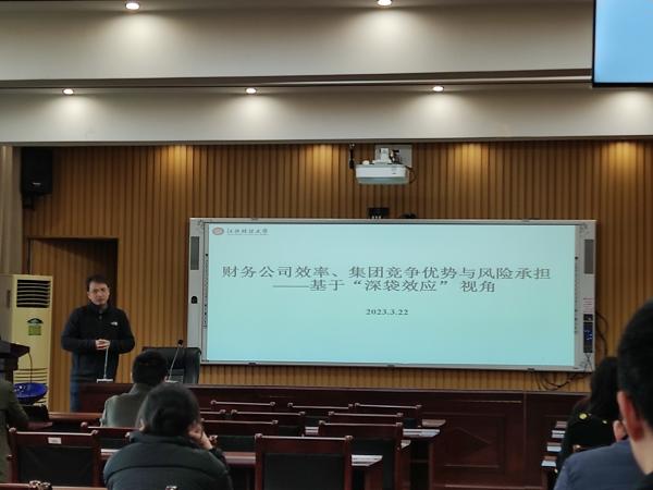 3月22日下午,百年江财系列学术讲座蛟湖金融论坛2023年第5期举办,金融学院教授潜力及其博士郑秋实作题为“财务公司效率、集团竞争优势与风险承担——基于‘深袋效应’视角”的学术报告,金融学院副院长蒋崇辉主持本次报告,部分教师及博士、硕士研究生参加。